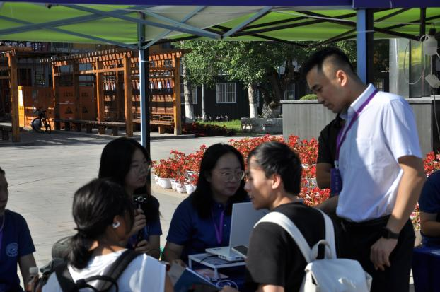 报到当日,朝阳初上,科技之星广场前迎新现场早已布置妥当。温馨的欢迎语、整齐的服务台,处处洋溢着热烈而温馨的氛围。新生到达后,工作人员热情引导,有序开展扫描报到二维码、人脸识别等工作,并为新生发放相关材料。学院党委副书记吴新明亲临现场,检查报到进展,慰问一线志愿者,并对迎新工作予以指导。研究生辅导员姜鹏耐心细致地为新生解答疑问,为新生快速适应新环境保驾护航的同时,传递出学院的深切关怀。