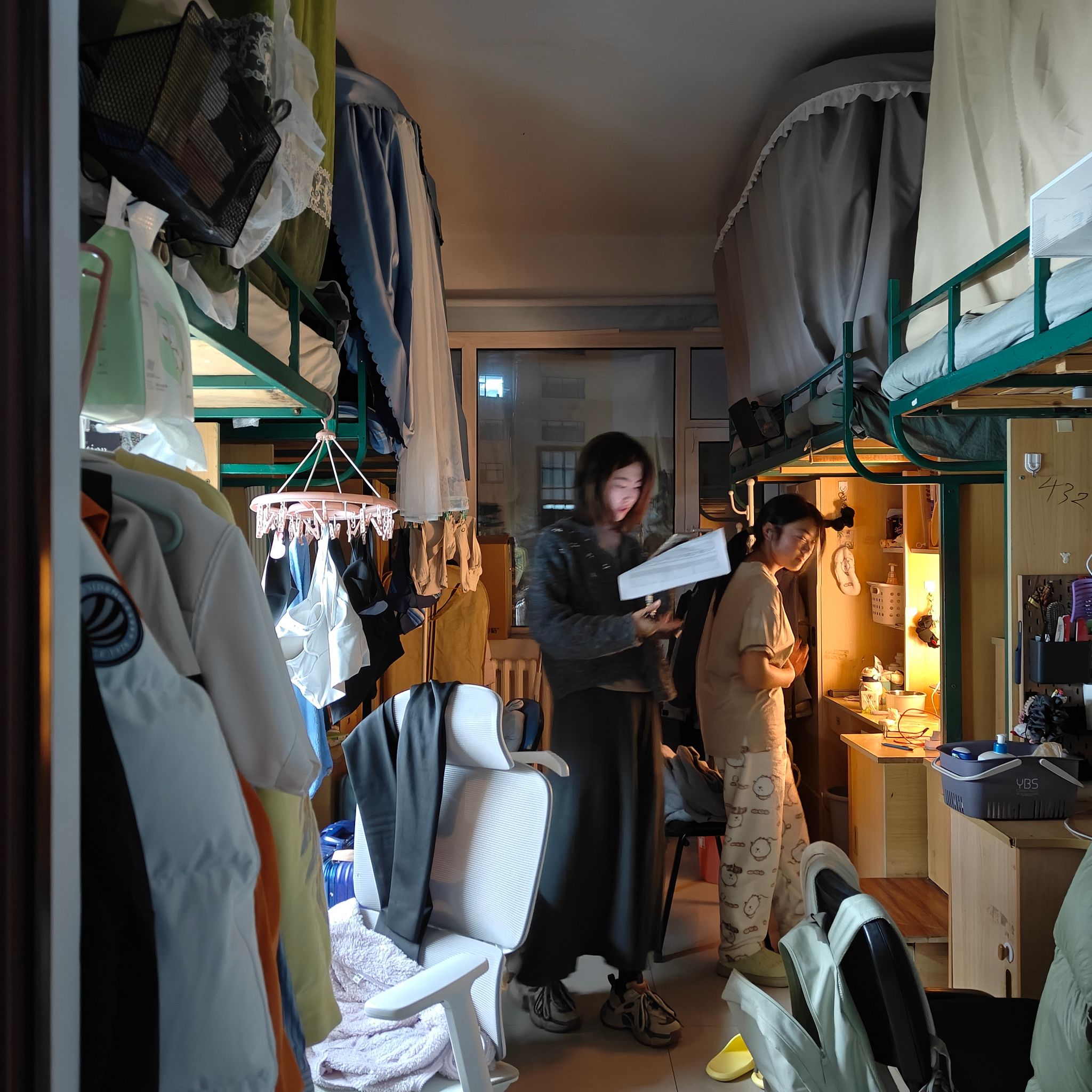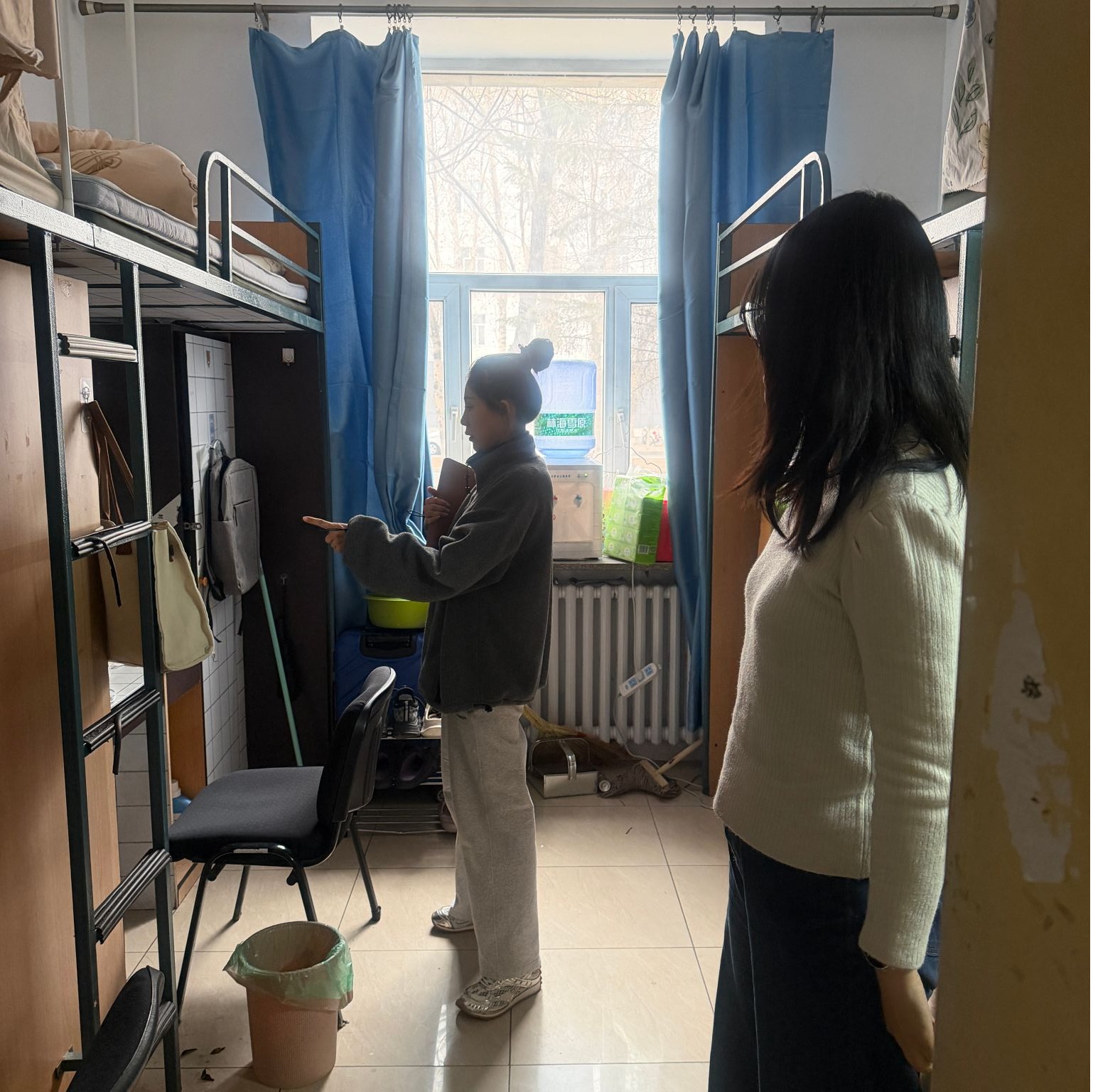 此外,老师们还同步检查了宿舍整体整洁度、室内物品摆放情况。检查过程中发现,大部分同学能够自觉营造一个干净整洁的宿舍环境,将个人用品摆放整齐,但还有部分同学存在着物品堆放杂乱、寝室内堆积废旧纸箱等问题,存在一定的安全隐患,对于此类问题,老师现场要求同学立即整改,并强调了宿舍卫生和安全的重要性,引导同学们养成良好的生活习惯,共同营造舒适安全的住宿环境。
